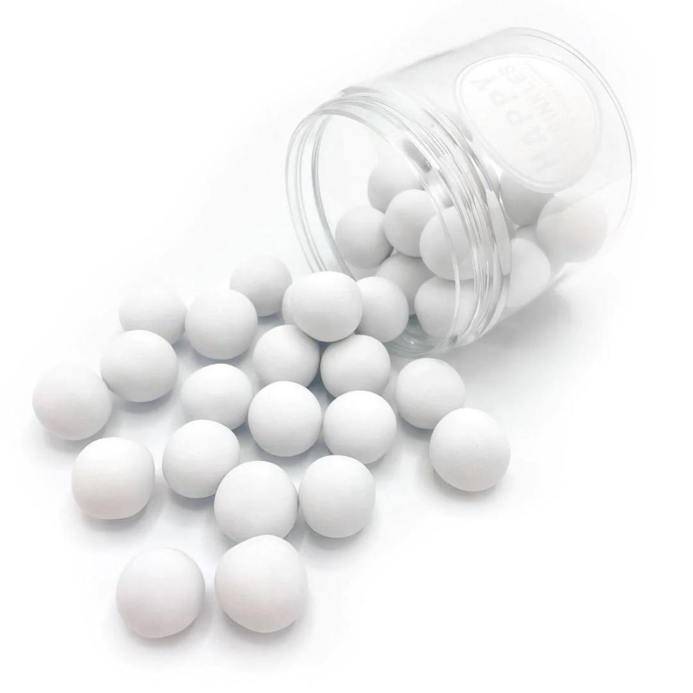 Happy Sprinkles Sjokoladekuler - White XXL 135g Sjokoladekuler fra tyske Happy Sprinkles i hvit farge. Sjokoladekulene er i XXL størrelse. Setter virkelig prikken over i´en på dine nydelige kaker og cupcakes, og passer perfekt sammen med våre andre sjokoladekuler fra Happy Sprinkles.  Ingredienser: sukker, stivelse (ris), mel (malt  hvete ,  hvete ),  hvetegluten , maltodekstrin, hel melk spulver,