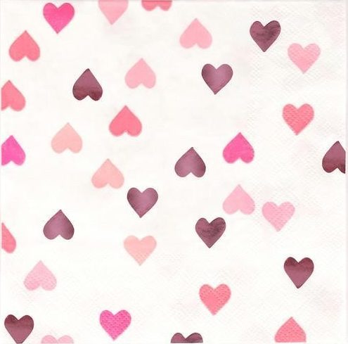 Servietter, Hvit med rosa hjerter, pk/16