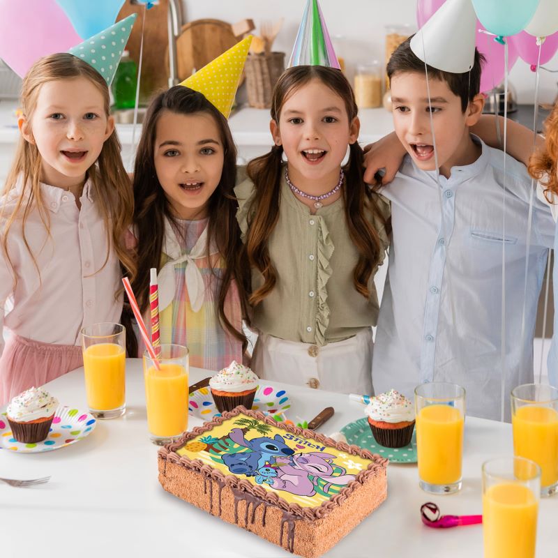 Det Spiselige Kakebildet – Stitch A5 (14.8x21CM) gir en enkel og morsom måte å lage en flott Stitch-kake på med en profesjonell finish. Laget av høykvalitets spiselige materialer, er dette kakebildet E171-fri, glutenfri, laktosefri, fri for melkeprotein og uten tilsatt sukker, noe som gjør det egnet for ulike kosthold.