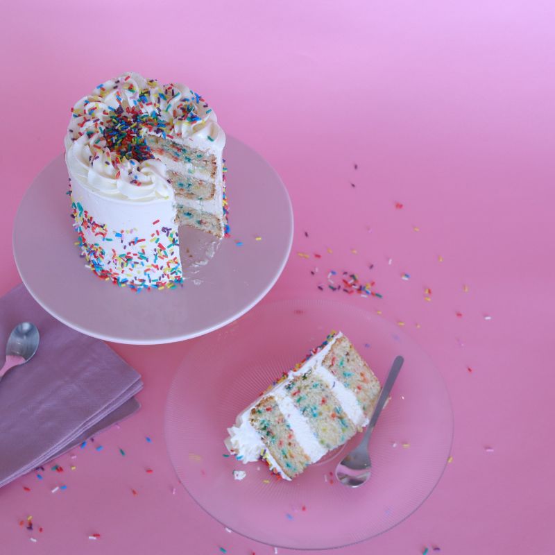 Til en høy kake (13cm) i diameter, brukte vi én boks med kakestrø. Da ble også kaken dekorert med kakestrøet.