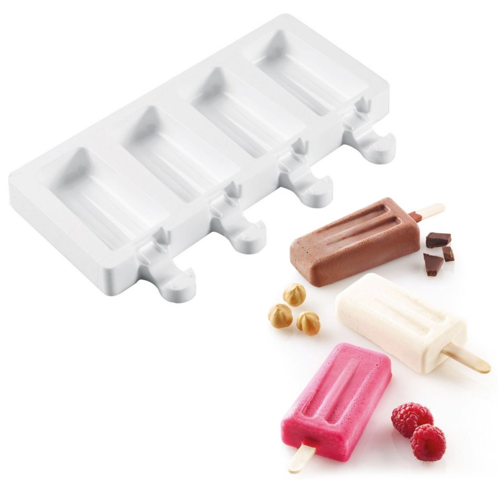 - 1 stk silikonform med fire hulrom slik at du kan lage fire pinneis om gangen.